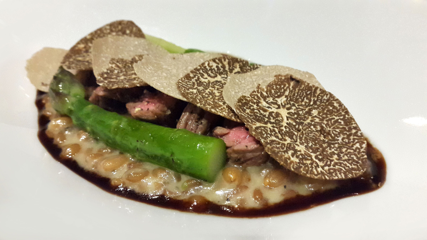 Risotto of organic spelt from Eden Valley with Scottish Beef and Asparagus…and a wee bit of Truffle for good measure. Ohhh this was so good.