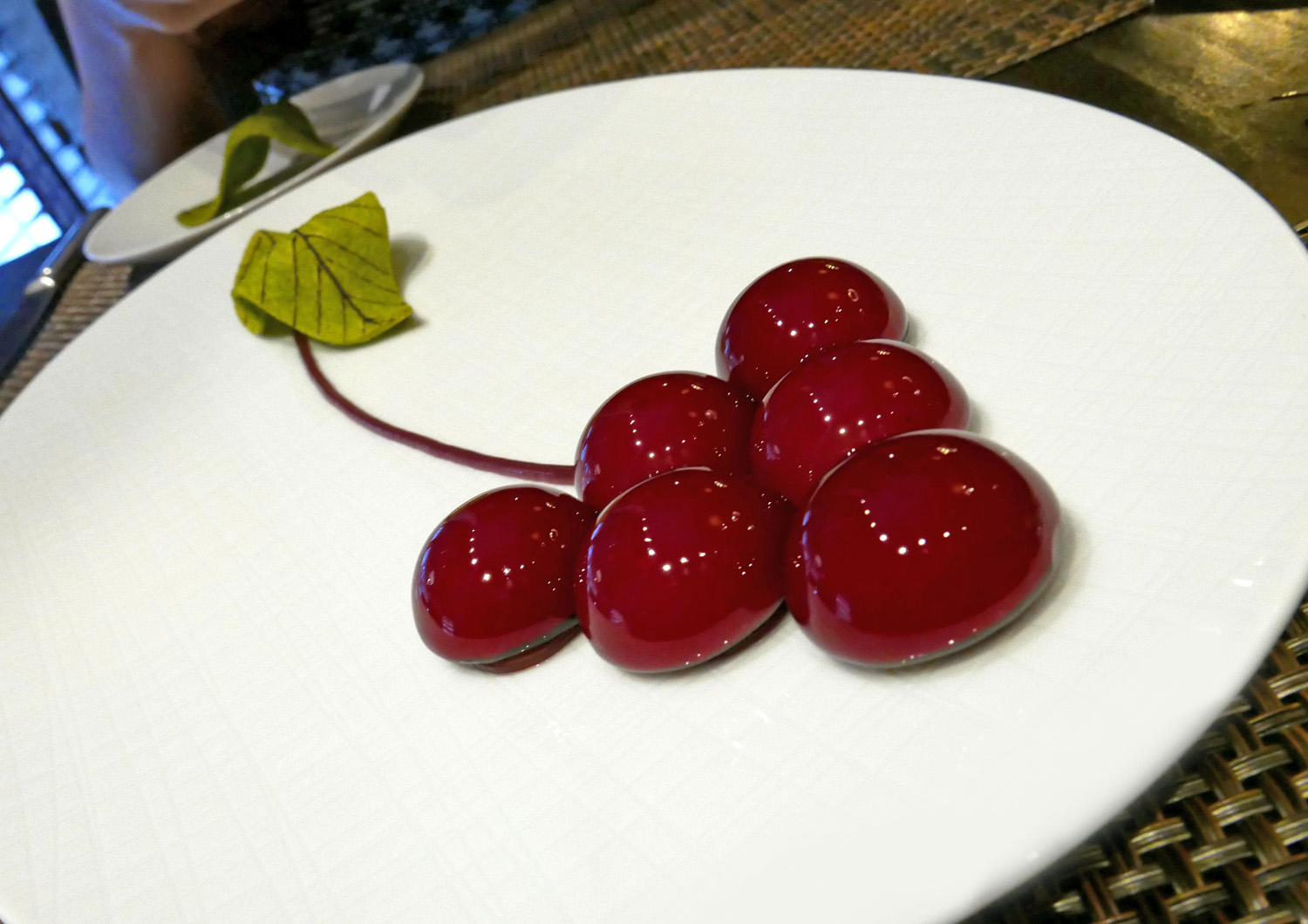 I suppose this one shouldn`t leave the menu now as it`s such a popular dish at Castle Terrace. It might even get as popular as Hestons Meat fruit. Here we were served a Free range creamy Chicken liver parfait placed inside a Muscat grape outer coat. The leaf is a cracker made from Rosemary.