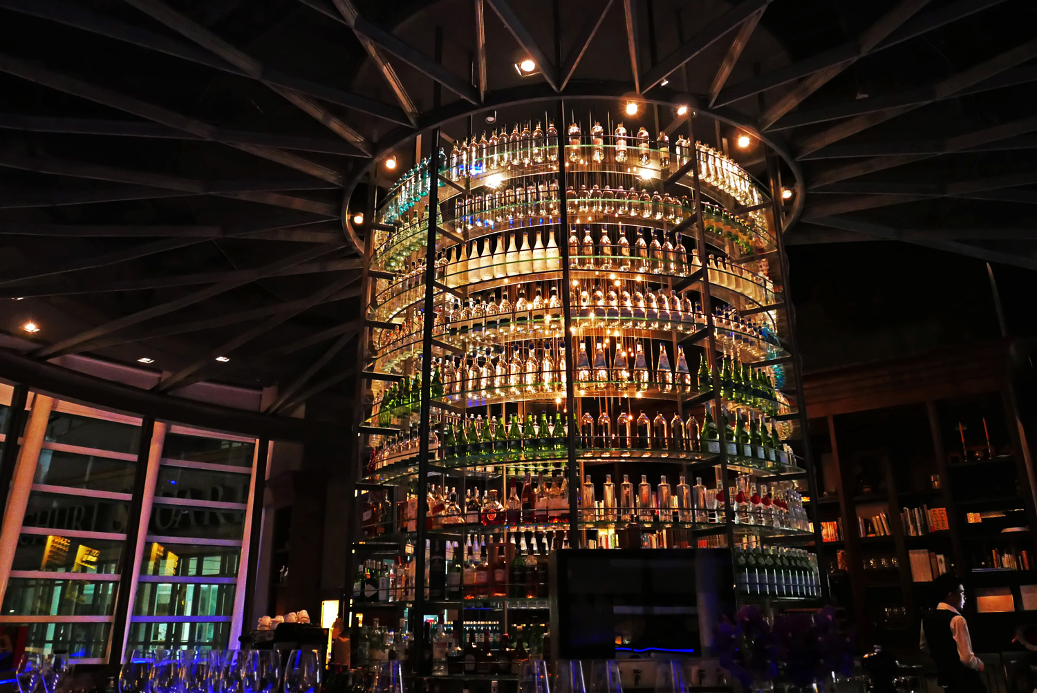 The Water Library in Bangkok – Normally the first thing that would hit you upon entering into a restaurant is their display of Wines. Here, unusually it`s Water , lots of it stunningly displayed in a floor to ceiling `library`. Focusing on their primary product I`m actually wondering what a Water tasters notes would read like after sampling the 30 or so different bottles they have on sale here. Wet , Rounded , Soft , Structured , Lively , Vivacious. My God…isn`t Water just Water , a vehicle for flavour ? OK for the Water connoisseurs out there , there`s 30 different bottles here for you to discuss and sample during your meal . The prices start at £3.70 / $5.40 / 190 Baht and “tap out” at £5.80 / $8.50 / 300 Baht. Quite reasonable when you compare that to the likes of Veen £15 / $23 for 750 ml or the outrageously priced Kona Nigari at £275 / $ 402 for 750ml. Living here in the English Lakes I suppose i`m just totally spoiled. My tap water is perfectly drinkable and we have mountain streams that offer `Paradise` water on a hot summer day ( when we get one ). Anyway…..enough about Water.