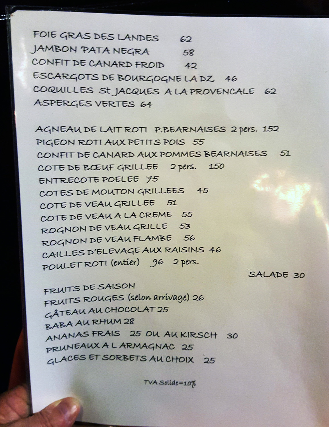 My experience at C l’A L was 20 years ago, so not relevant except in terms of the place’s reputation. We were 5 eating a late lunch, one of our group having been before and insisting we needed to visit. We ate escargots, pate, plates of pommes frites, and somehow thought that we could polish off two roast chickens. The birds were huge and cooked to perfection, enriched with goose fat under the skin. We couldn’t begin to finish all we had, and that was a shame, because we’d have saved big ordering just one chicken. Yes, it was almost stupidly expensive for simple food, but it was delicious, and so was the wine. Can’t complain. My friend who chose it is the type who will overspend for dinner. I’m the type who likes to look at a menu and prices first. A lot easier to do today.