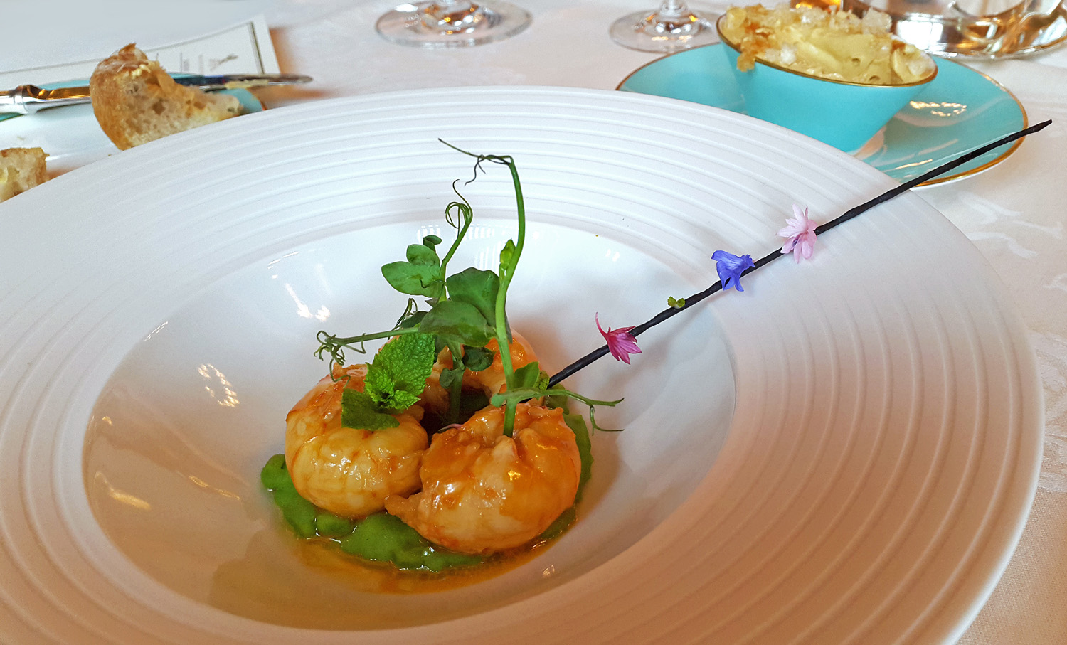Langoustines with Mint , Peas and Black Garlic ….stunning.
