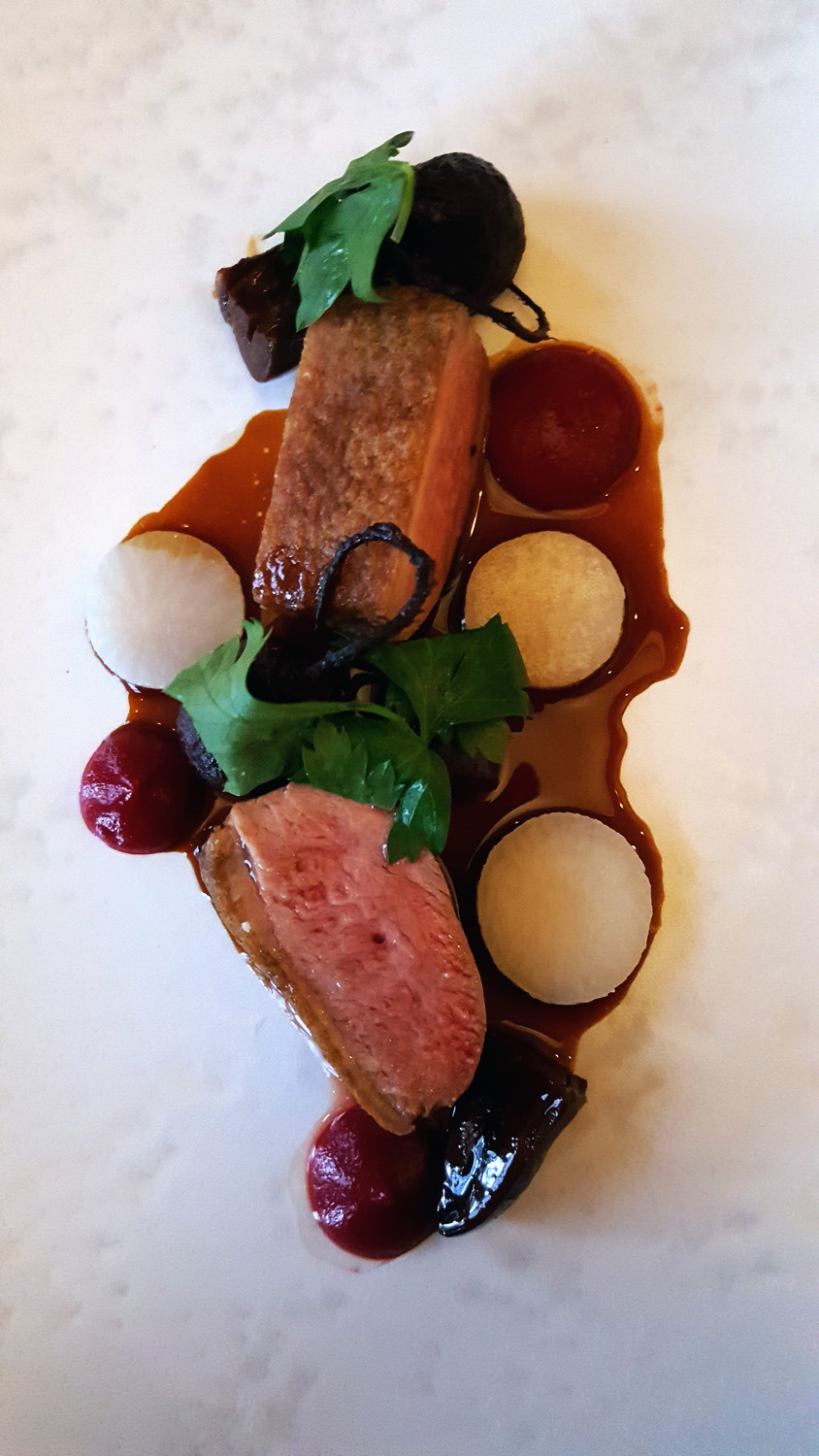 Goosnargh Corn fed Duck , Breast and Heart , Beetroots , Alexanders , Turnip , Mead sauce – Well cooked and very tender Duck and a nicely balanced dish ….BUT ….more Beetroot again. There was lots on my last course so this one needed a little tweak here and there.