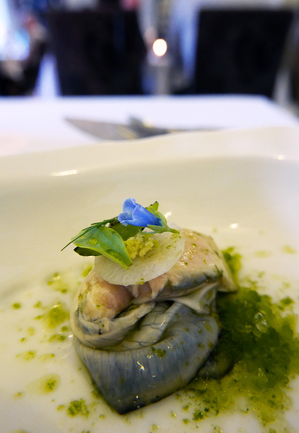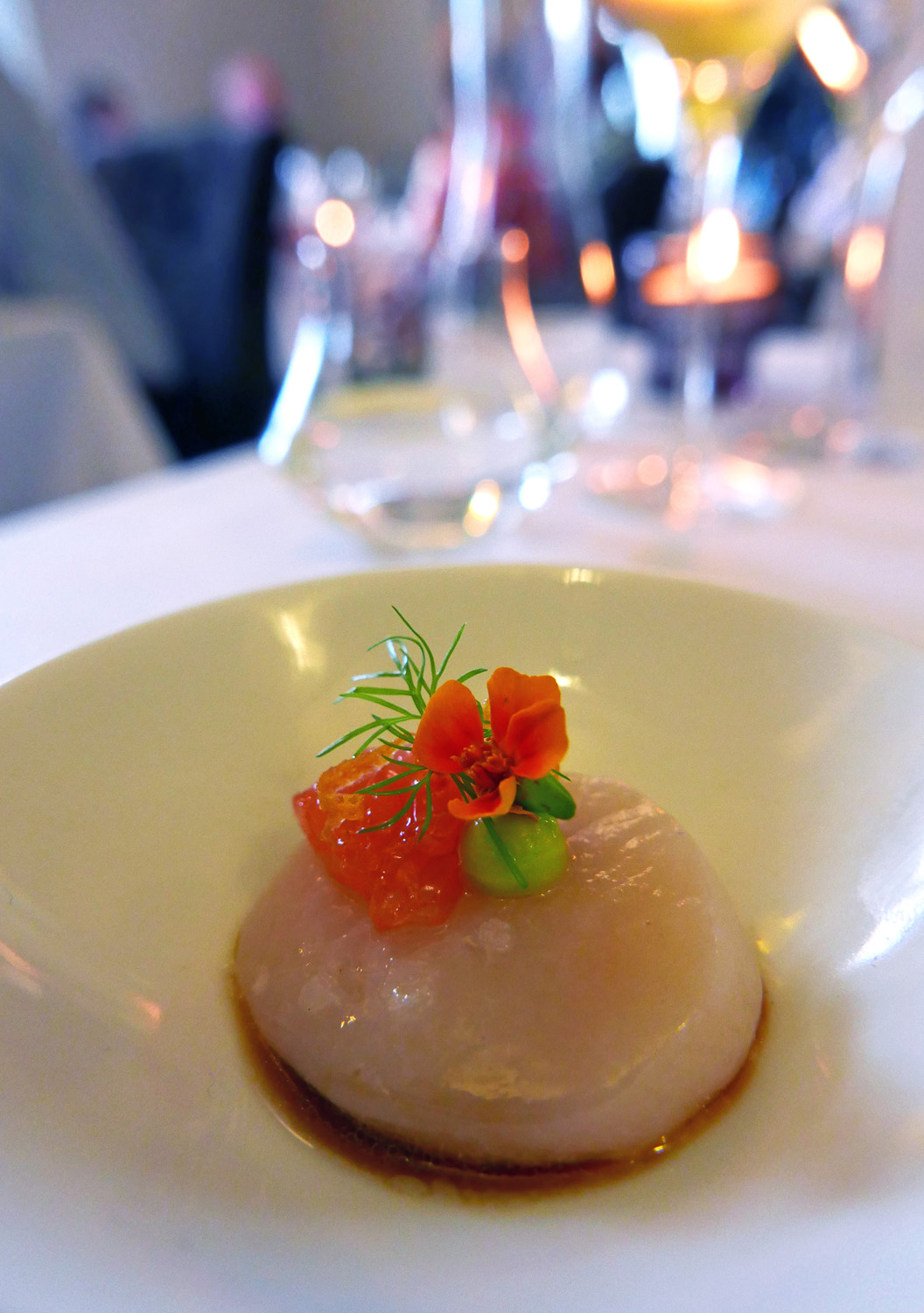 62deg LINDISFARNE OYSTER – I really dislike Oysters but i`ll keep on trying them every time they`re on a menu. This one was cooked gently at 62 degrees so firmed it up quite a bit. I finished it off but Oysters in any shape or form just aren`t for me.