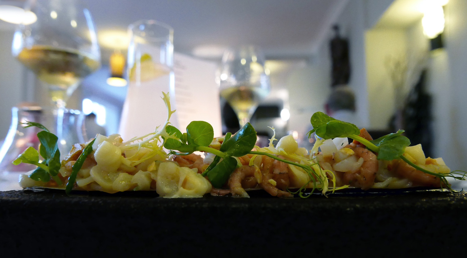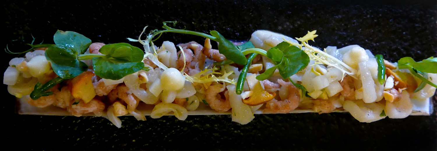RAZOR CLAM , ALMOND , BROWN SHRIMP, CELERIAC – This one is a regular on Chefs menus and a bit of a star dish at the Raby Hunt.