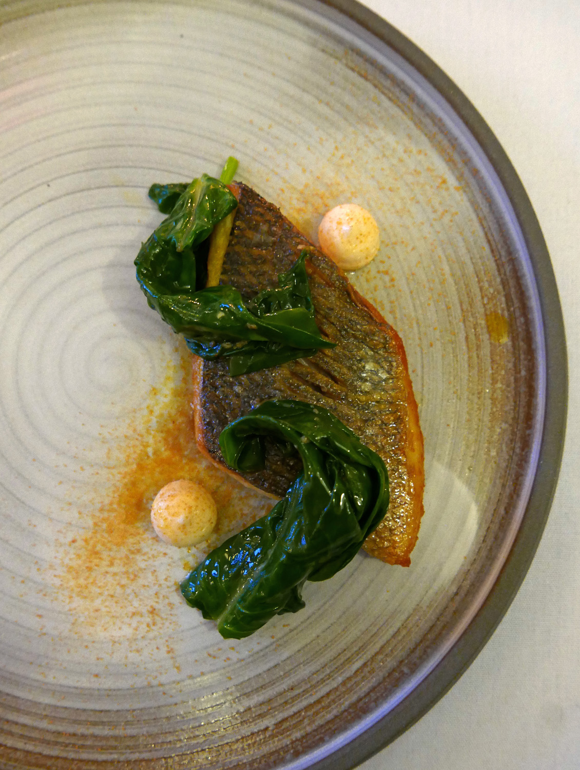 SEA BREAM , SMOKED COD ROE CREAM , SPINACH – A very simple dish with only a couple of ingredients…but very well cooked.