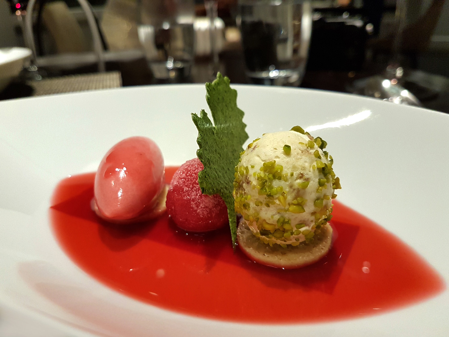 RASPBERRY – Blacketyside farm Raspberry confit with Nougatine Parfait and Raspberry soup. By the time desserts appeared we were almost waving the White flag but seeing as though the puds are my favourite I suddenly got a second wind and was raring to go.