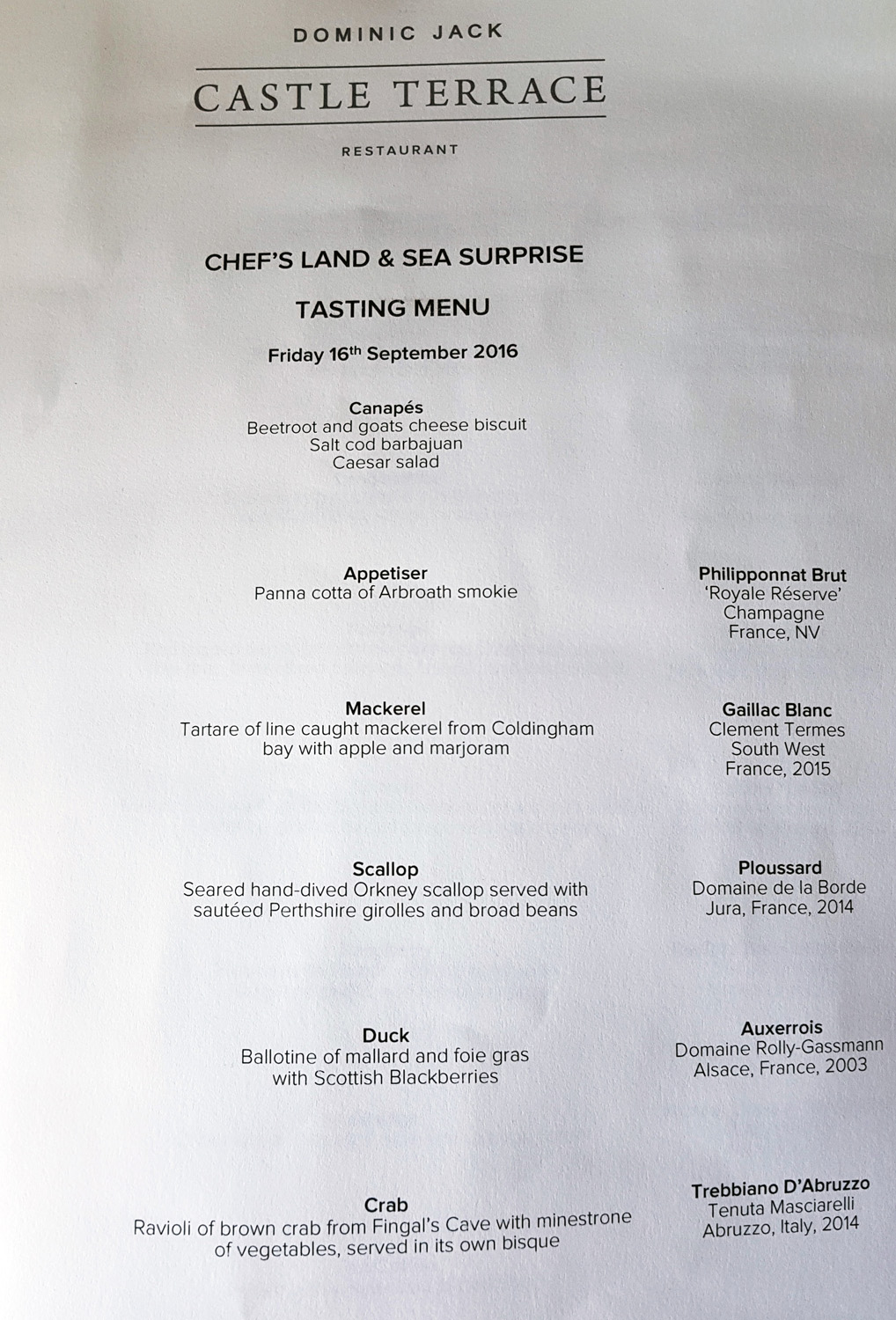 So here we go for Dominic Jacks Land and Sea Autumn Surprise tasting menu. I’ve already written in past posts about Dominic and his talents as a chef so I’ll recap very briefly. Chef Dominic is hugely talented having trained in the 3 star Michelin kitchens of Paris. This comes through in Dominics cooking style and presentation…..classic old school with a modern twist , no gimmicks and an amazing amount of attention to detail. I`ve recently eaten in some of the very best restaurants in Paris and if I were given a blind tasting then I would honestly put Dominic Jacks food up there with best that Paris has to offer…..it really is that good. Seasonal produce , the very best in ingredients sourced from Scotlands best suppliers. Cooked to perfection and beautifully presented as you can see from the photographs below……Go find out for yourself , you certainly won`t be disappointed.