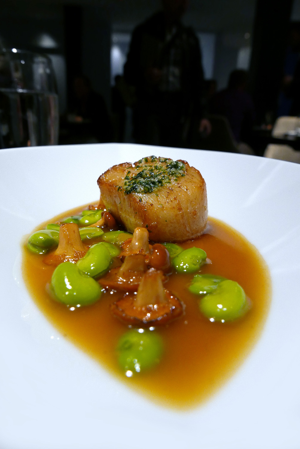 SCALLOP – Seared hand dived Scallop from Orkney with sautéed Perthshire Girolles and Broad Beans. One look at this dish will tell you how it tasted , everything was pure flavour. Wish we could get Scallops this size in Cumbria.
