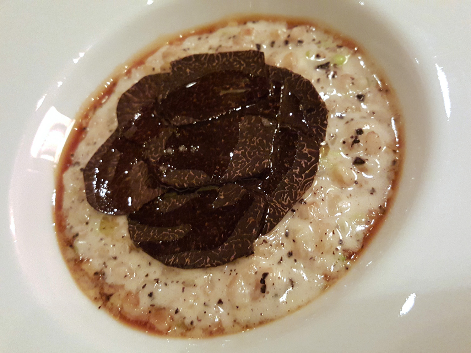 A Risotto of Spelt grain , topped with shavings of Black Truffle and a Morel reduction …..heaven on a plate.