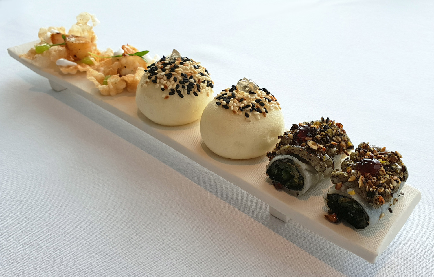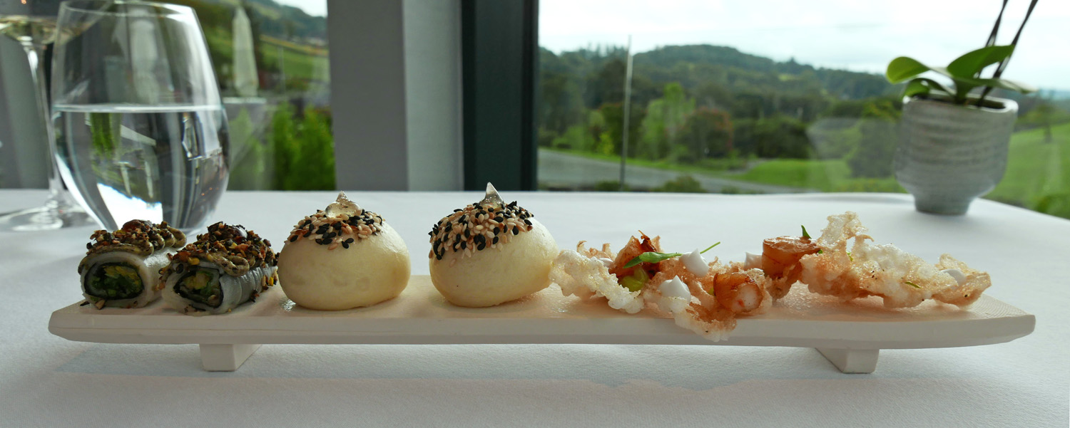 A SAMLING WELCOME WITH AN ASSORTMENT OF CANAPES.