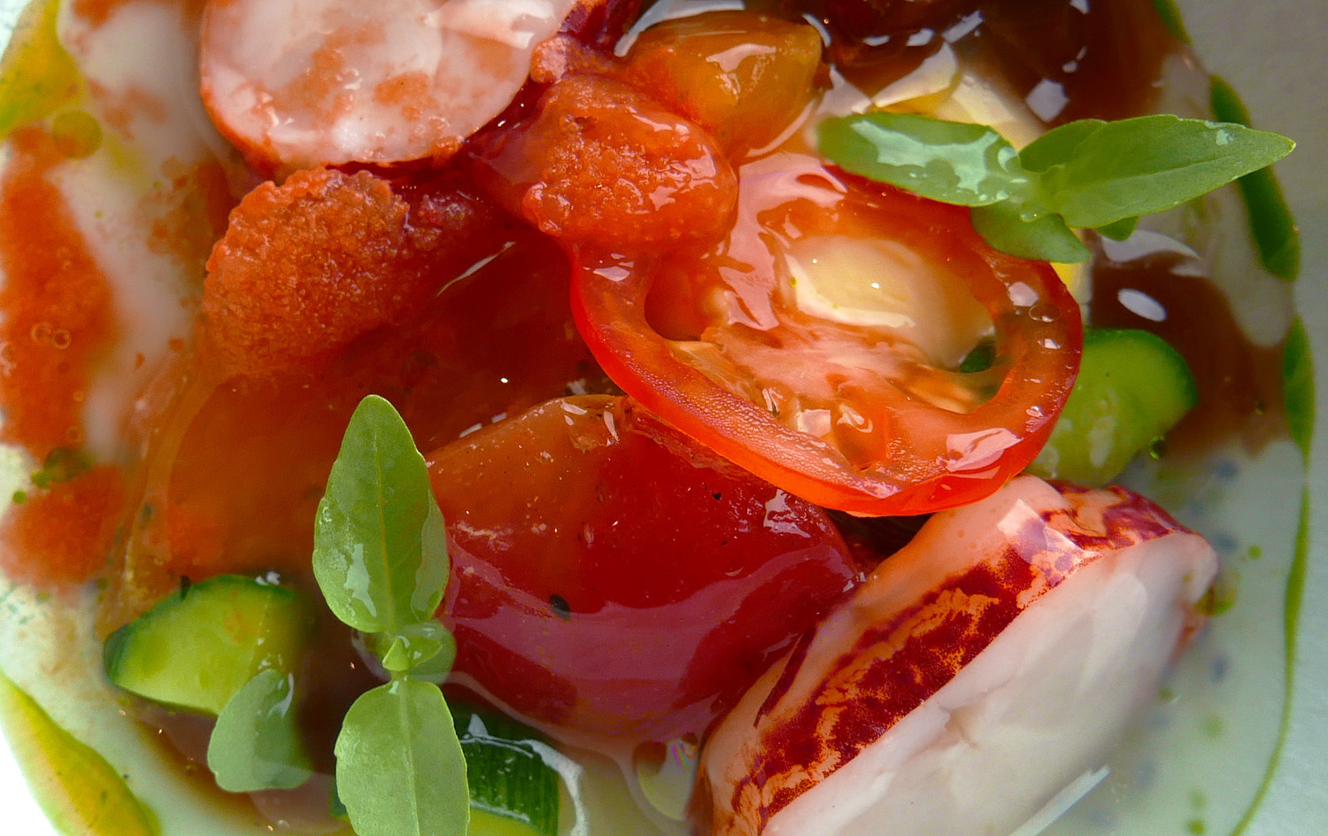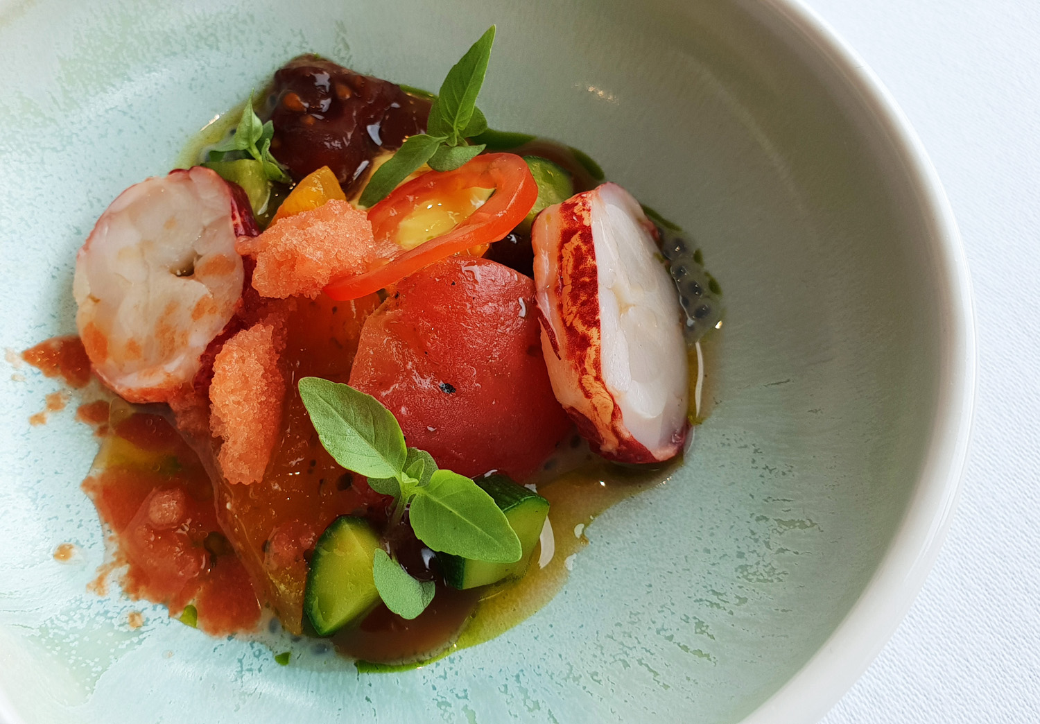LOBSTER – Isle of Wight Tomatoes , Native Lobster , Basil , Courgette , Smoked Ricotta , Rapeseed and Bloody Mary. – Full of wonderful Summer flavours and my only complaint was that it was so good I could have eaten 10x the amount.