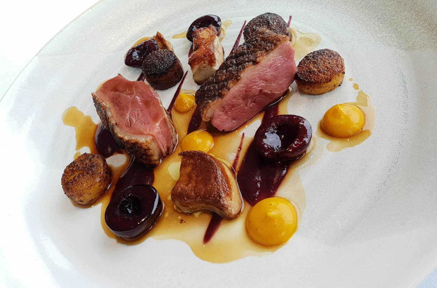DUCK – Goosnargh Duck , Sautéed Foie Gras , Roasted Plum , Five spice Carrot and Cherry. The Duck was a little chewy for my palate , however paired up with the Foie gras , tart Plum sauce and sweet Cherry it made a really tasty combination.