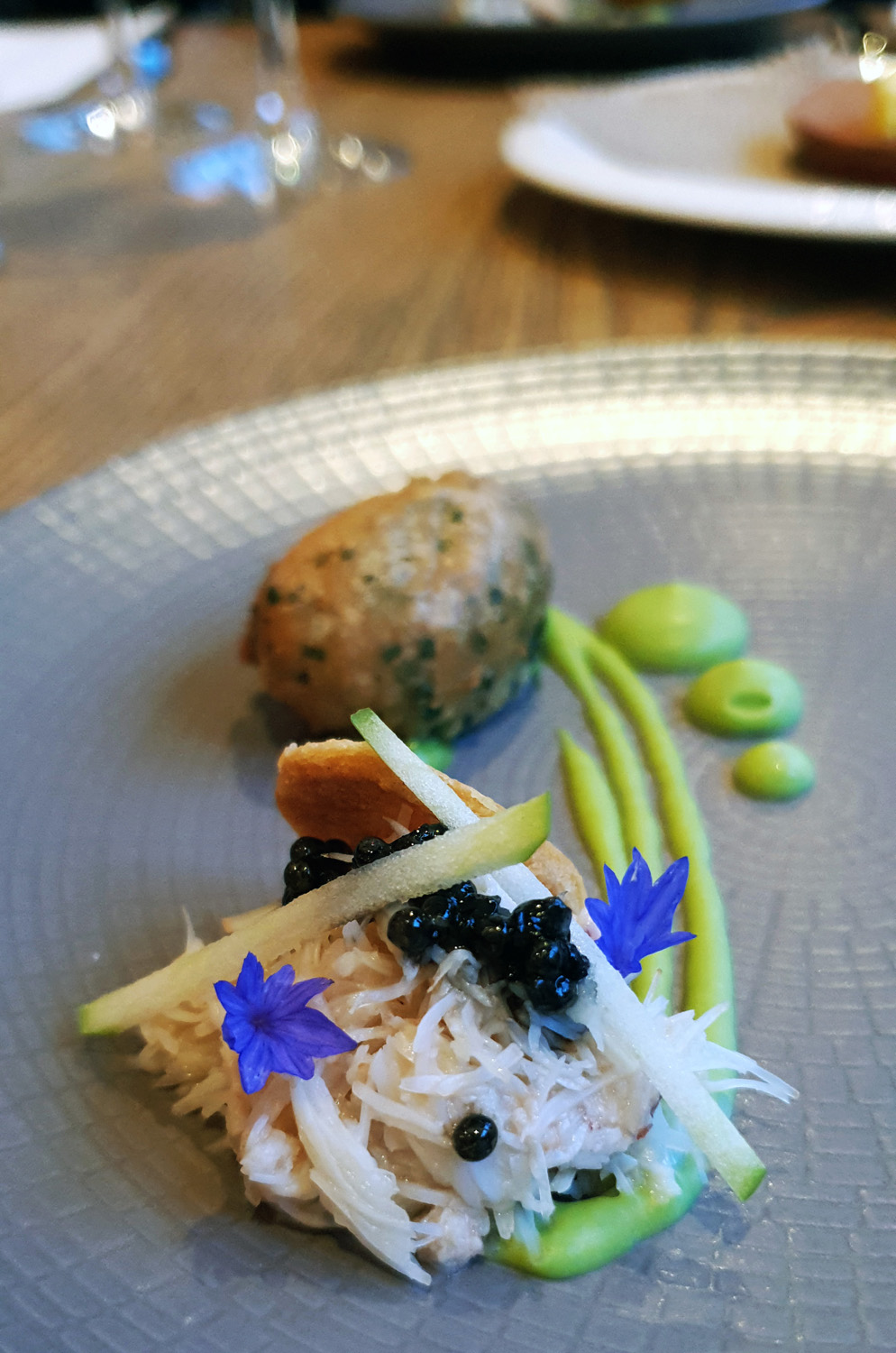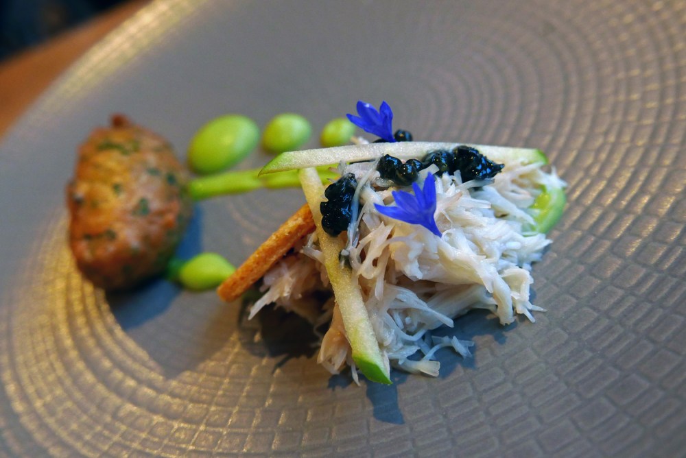 RAVENGLASS CRAB , BEIGNET , YORKSHIRE CAVIAR , LOVAGE – The Crab dish was faultless. I found the food presentation of the full tasting menu was precise , delicate and beautifully constructed but on the whole and being a Cumbrian lad I would like to have seen larger servings.