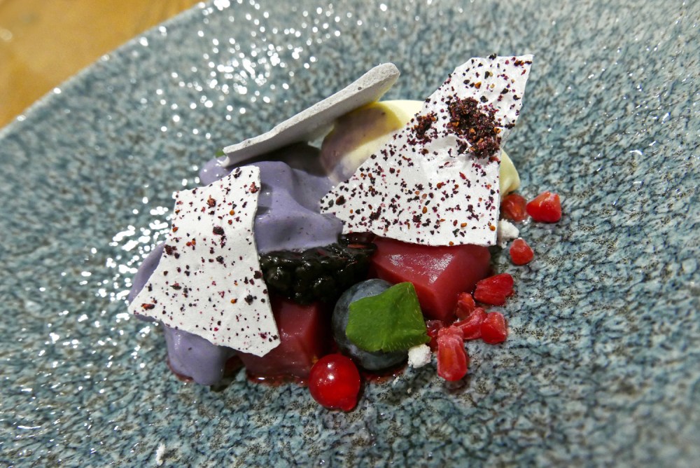 BERRIES – SUMMER BERRIES , BLUEBERRY , REDCURRANT AND SPRUCE – I really enjoyed this first dessert. Fresh seasonal Berries and a perfume of Spruce tips.