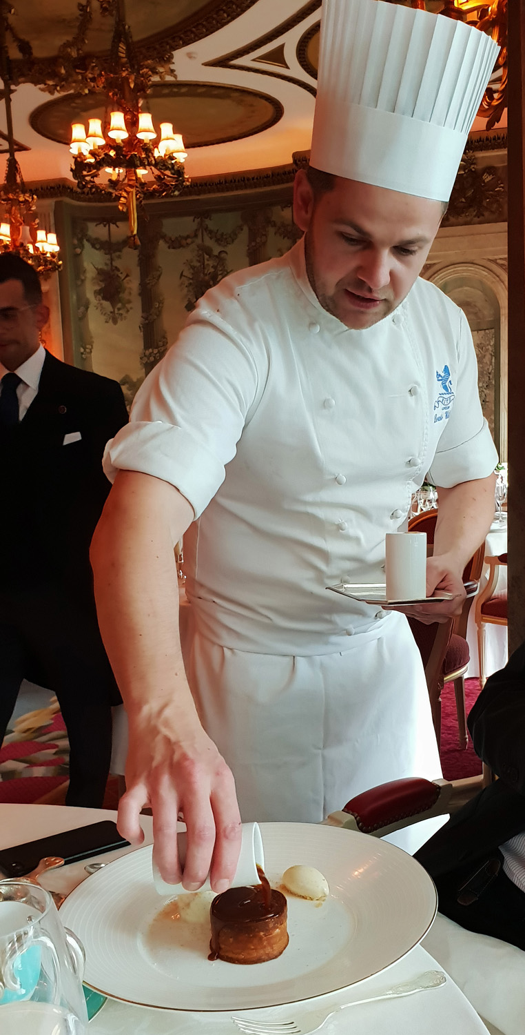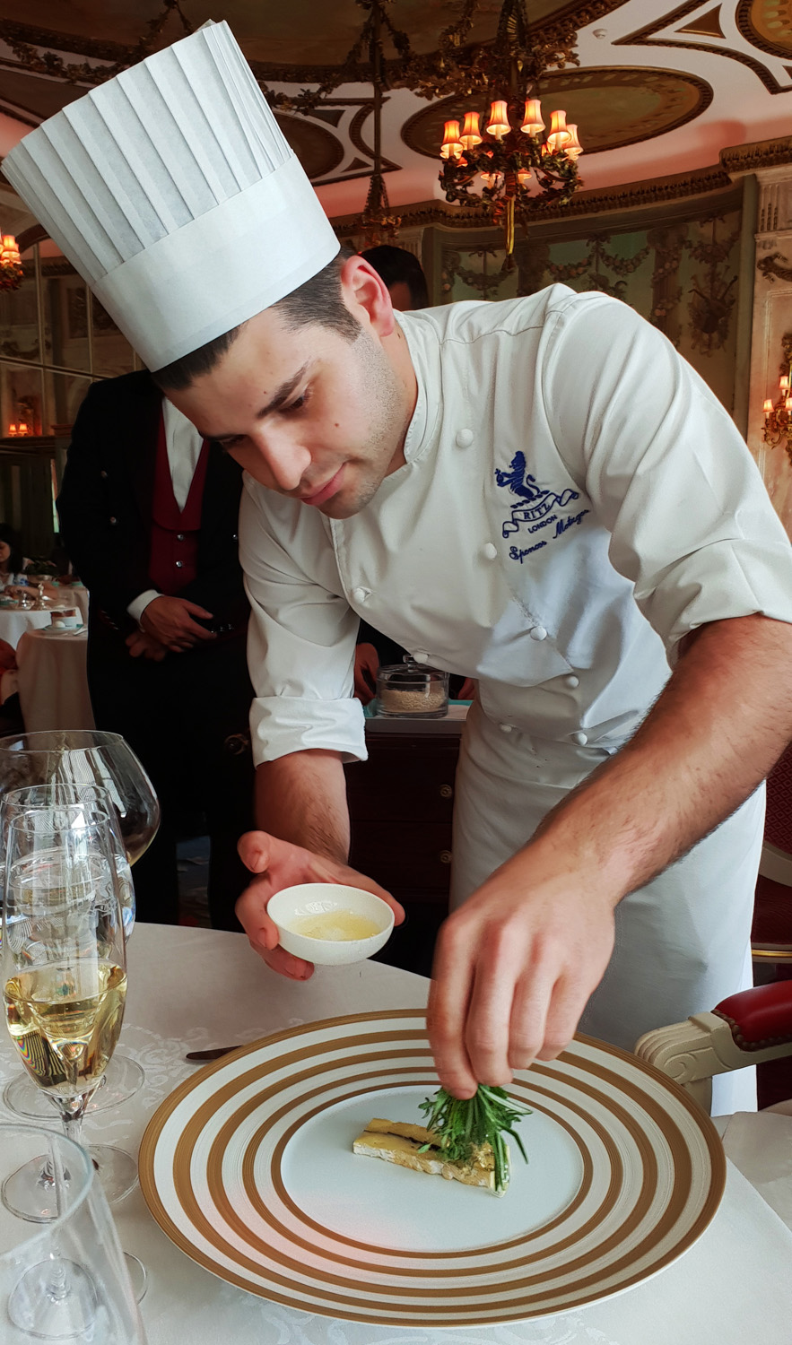 Cornish Turbot , Cauliflower puree , Baby Leek , Champagne Caviar sauce. – Upon entering the kitchens the young Ritz Chefs are stripped back to cooking basics before they progress to the more specialist cuisine. Get the base skills right and then go from there (something a lot of modern restaurants totally lack). So once again , we`re served prime ingredients, respectfully treated , faultlessly cooked and beautifully presented. I know i`m always blowing the Ritz Trumpet but they just have everything sewed up to perfection here.