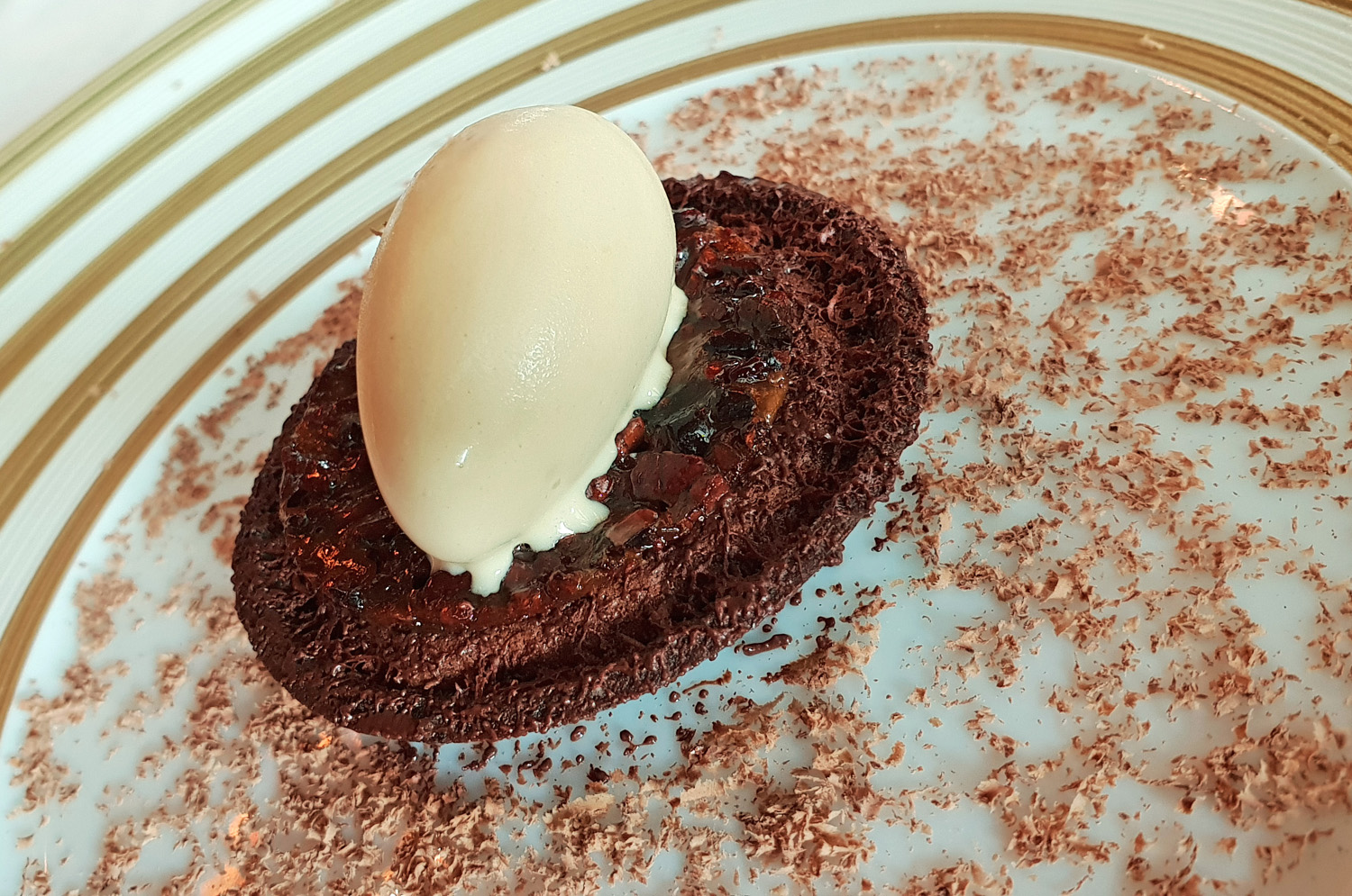 Chocolate Tart , ice cream – Not one the usual Ritz Masterpiece desserts but a well made Chocolate tart.