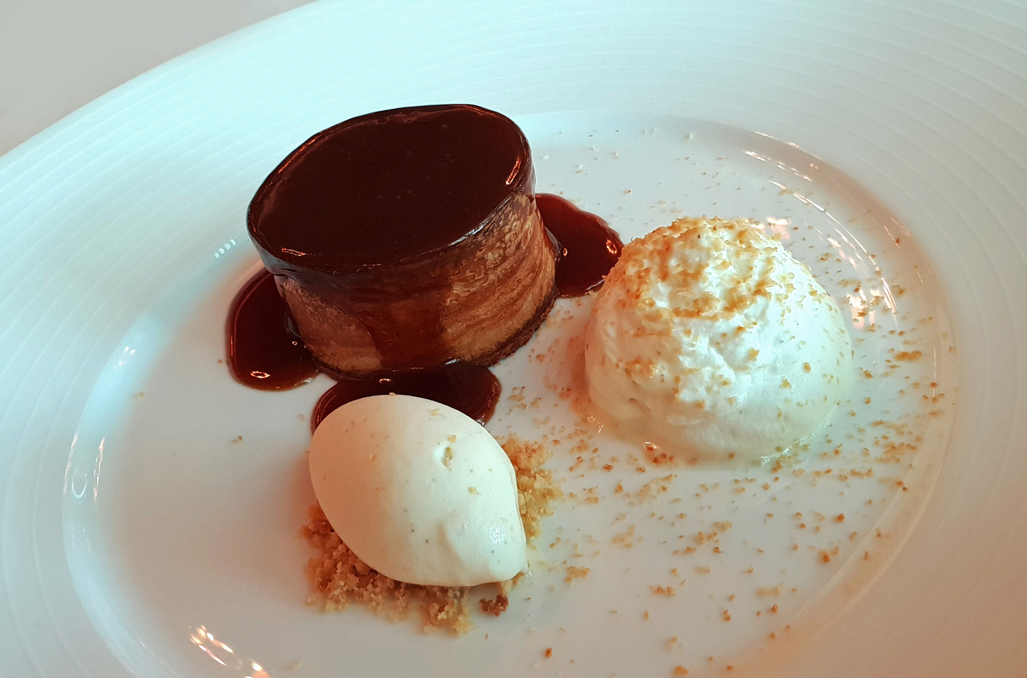 Caramelised Brioche , Apple and Ice cream , sticky toffee and Rum sauce.– For lovers of all things sweet , this dessert is a total sweet rush. Who wouldn`t enjoy the flavours of the Sticky Toffee delights ? Chef Lewis Wilson , runs the Pastry section , such a major operation overseeing up to 400 afternoon teas every day….Top guy and one of the most skilled Pastry Chefs in the UK (If not the best).