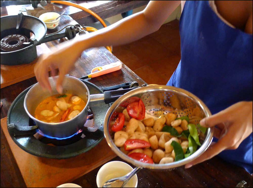 Add Nestles Condensed milk if you like it sweet or sugar to your own personal taste. As i said above, everyone cooks this soup differently so it really is one to develop into something you can call your own , its more fun that way. Try adding more herbs , more lime juice , more chilli jam. Chances are that you`ll never make it the same two times in a row. The one i made above in Thailand was stunning , i couldn`t wait to try it again at home in the UK . I even brought all the ingredients back home with me and made it again. It tasted beautiful , but it never quite tasted the same as it did in Hua Hin. Just go into the kitchen , have a play and enjoy the fun.