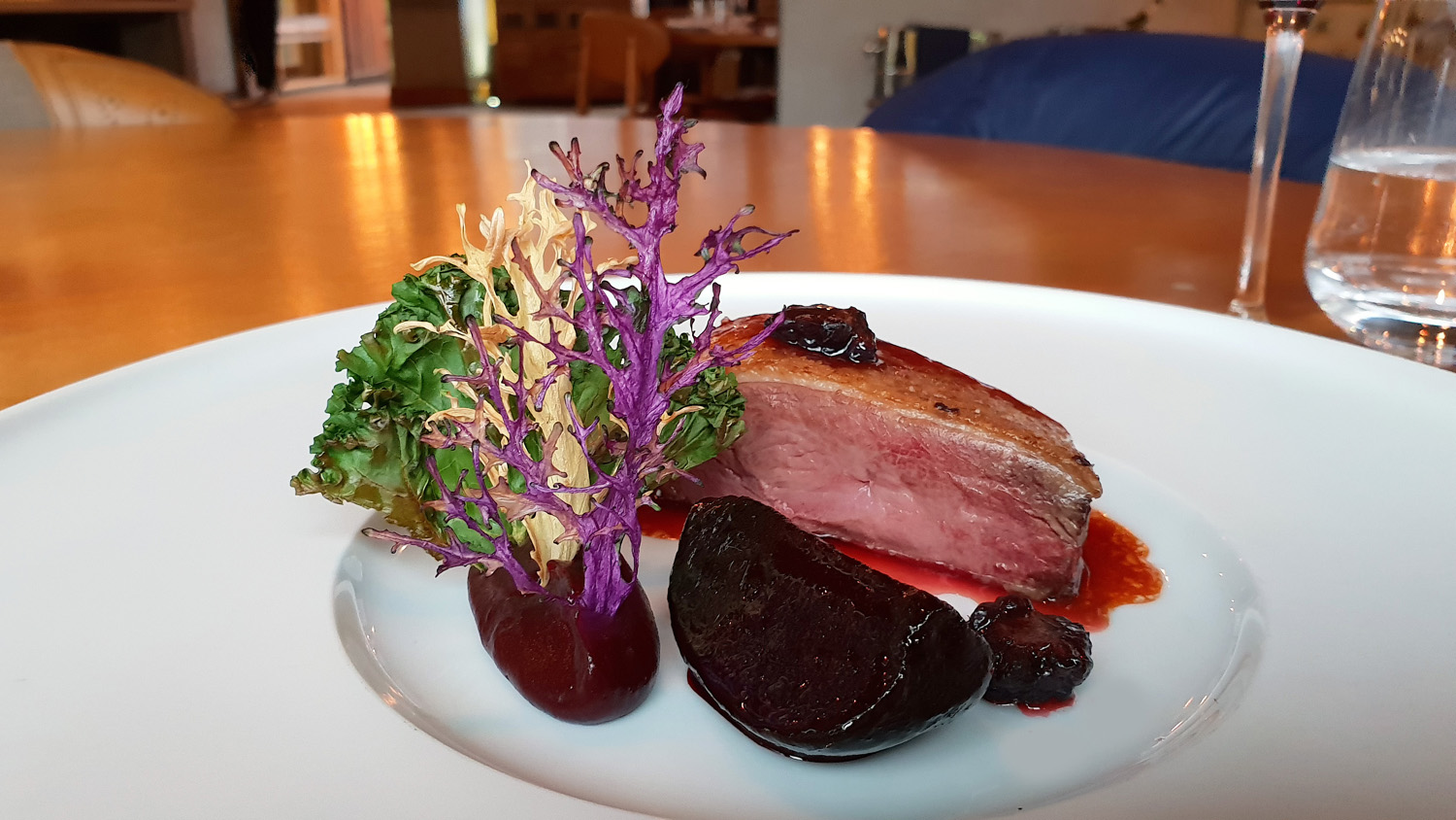 Salt aged Duck breast, grilled Blackberries and Beetroot