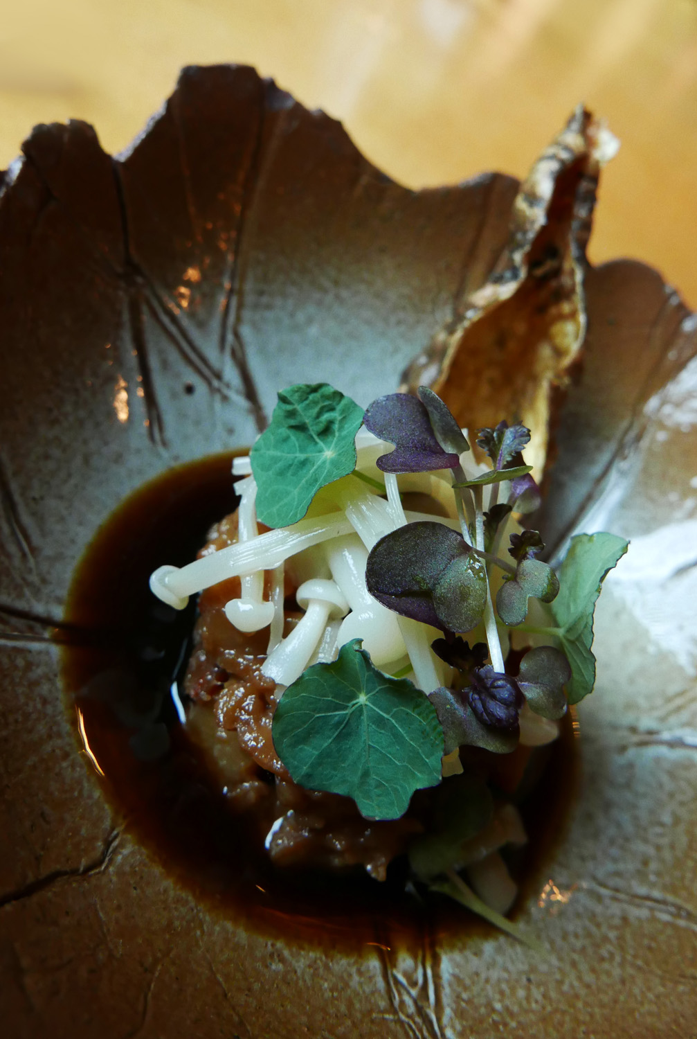 Braised beef cheek, Hollendaise , Choucroute Secreto (The Secret cut of Iberican Pork) and Txogitxu Tartare (15 year old Cow / Beef).