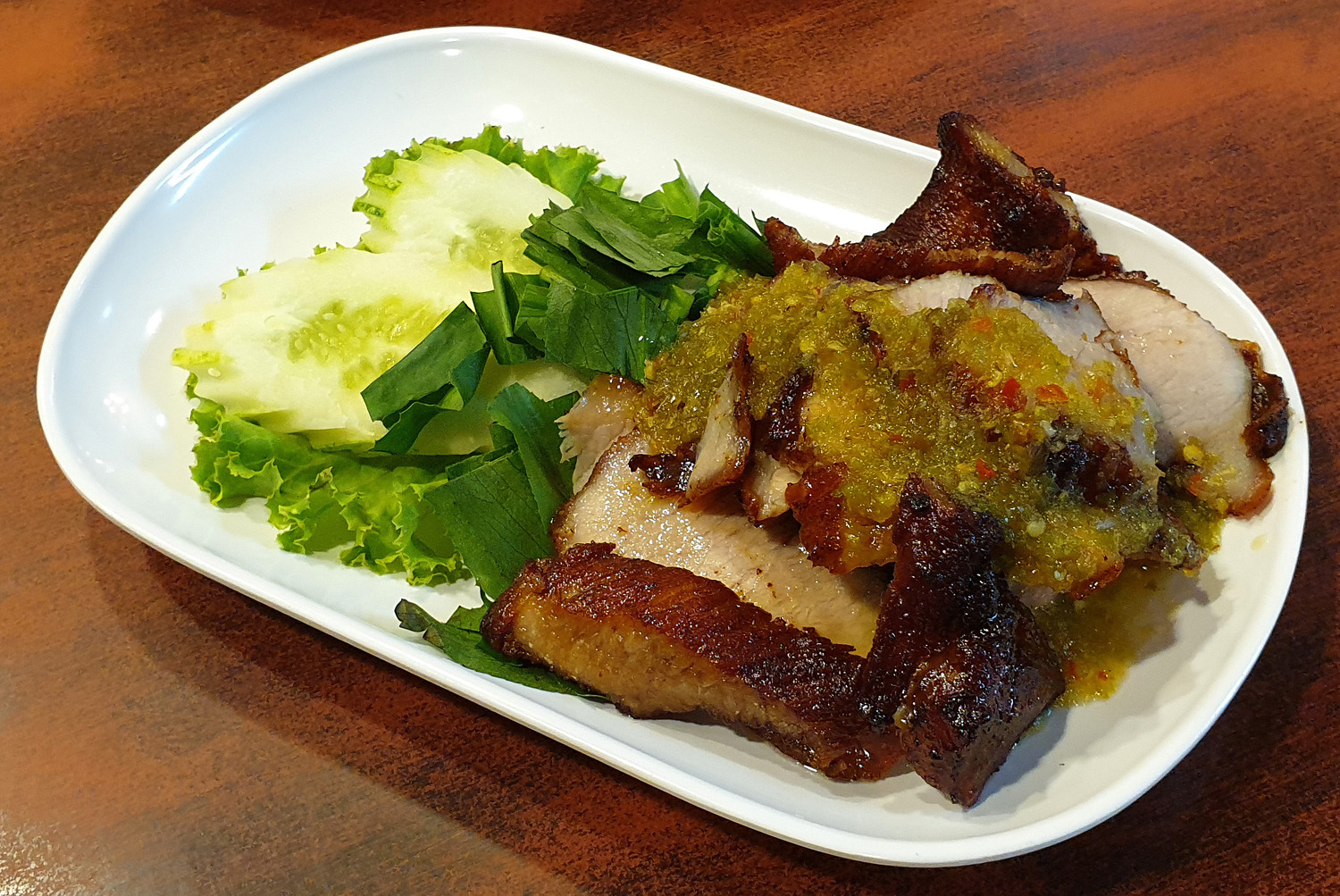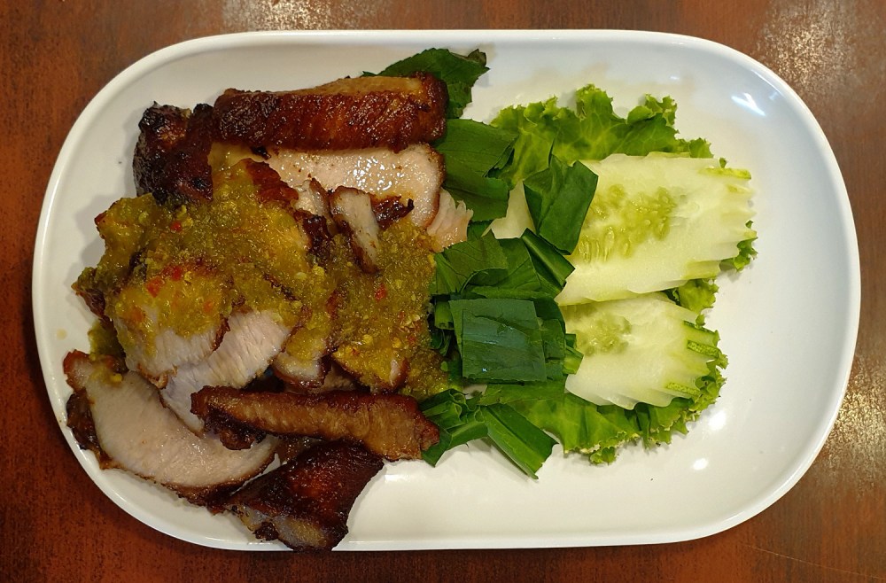 Roast Pork with Nam Jim ( Thai Green / Lime, Sour dressing )