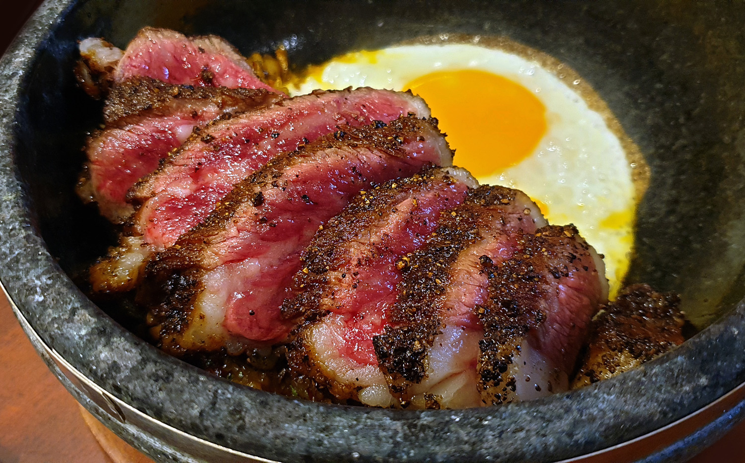Sizzling Wagyu Beef , Spicy fried Rice , Soft fried Egg.