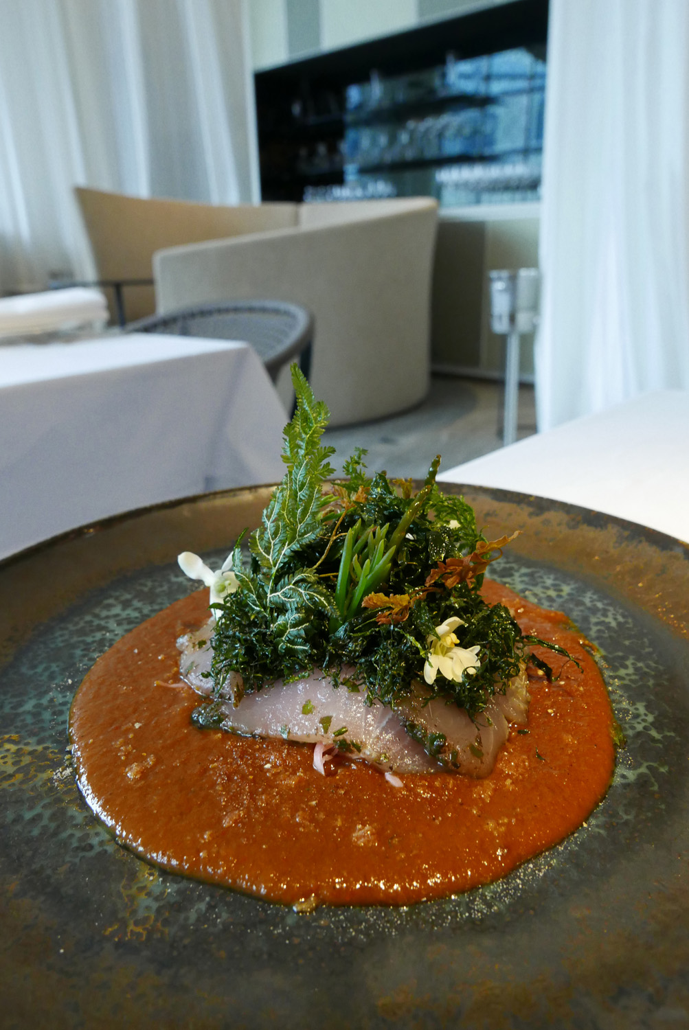 Thai deep sea game Mackerel , slightly Umami-synergy cold infused with Sothern Thailand fresh Kua Kling Curry and Beach plant life.