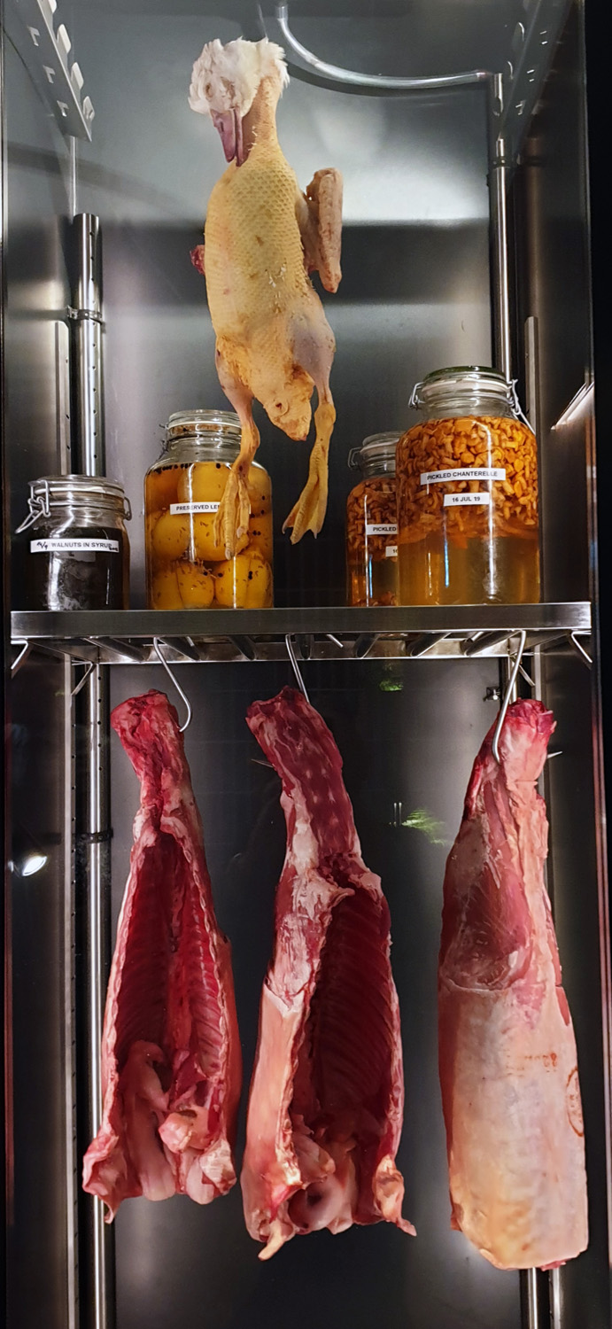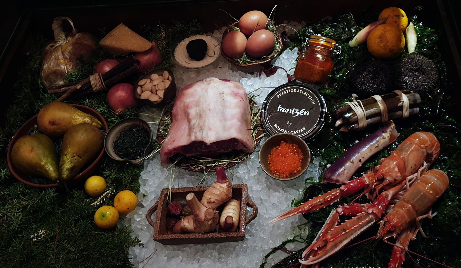 En- route from the Lounge to the Restaurant the guests are shown the box of delights that will make up their dinner during their visit.