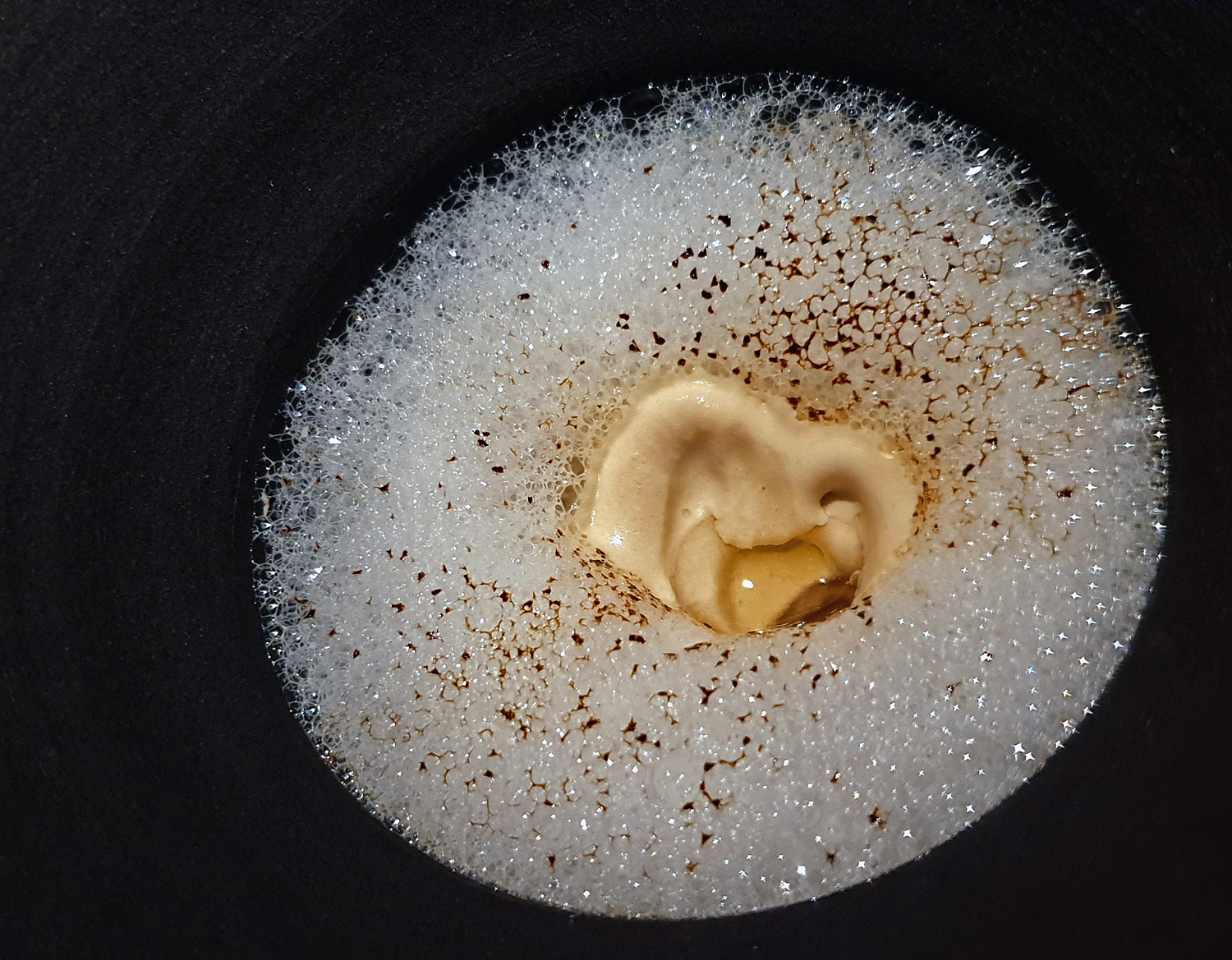 “Mont Blanc” – Chestnut , Rum & Raisin Jam with toasted Yeast , Foie Gras Semifreddo , shaved Alba White Truffle and Gold leaf. Another course I really looked forward to during the weeks leading up to the meal. A very innovative and exciting recipe , however it would have been much better being served as a “crossover” course straight after the savoury main course due to the dominant flavours of Foie gras and Alba White Truffle. It was still an absolute star course and I was so happy eating it at any time during the meal…..Stunning , brave and I want more of this beauty.