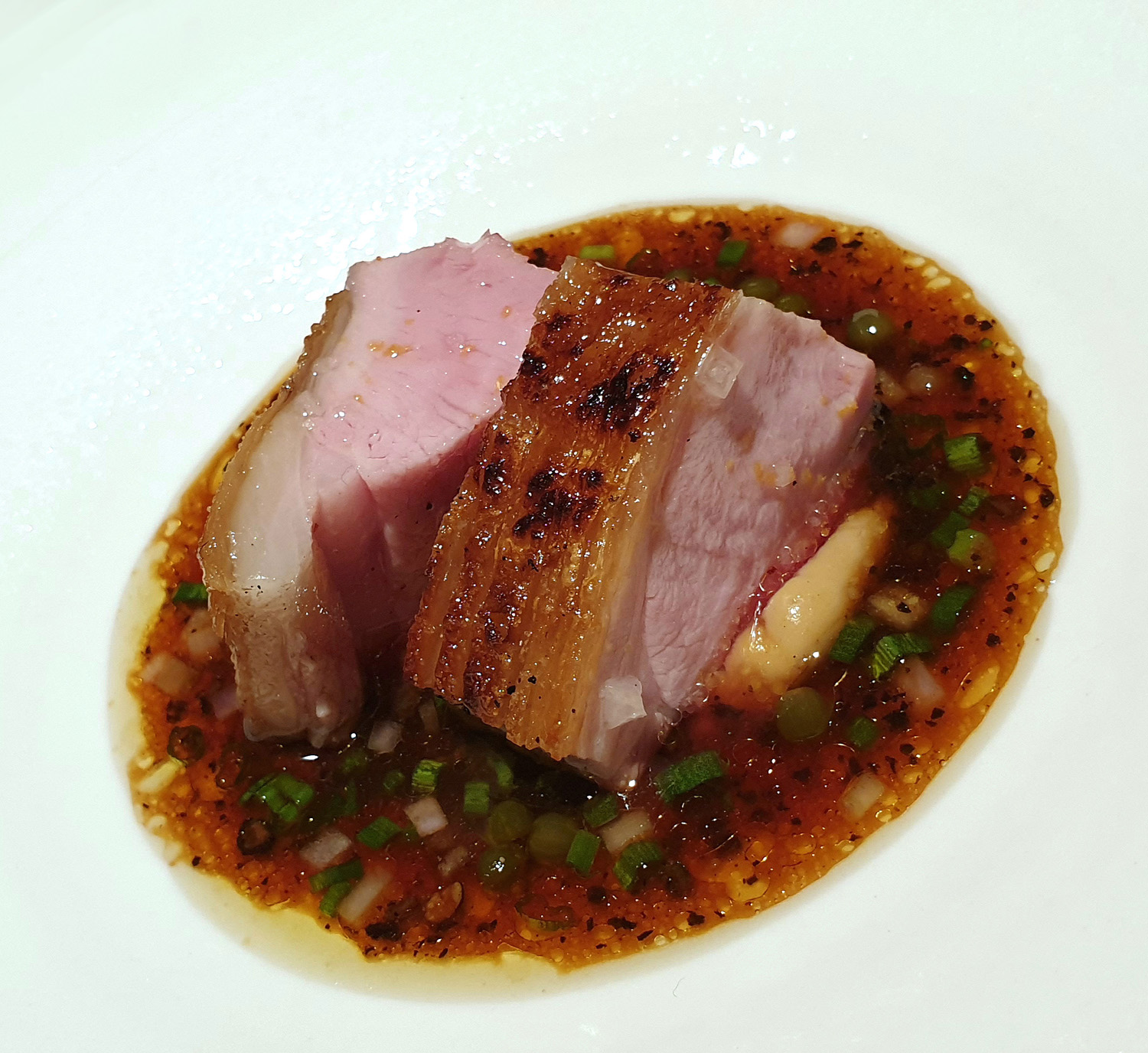 Autumn Lamb , Roasted Pine Nut “peaso” , fermented Kampot Pepper and Strawberry Vierge.