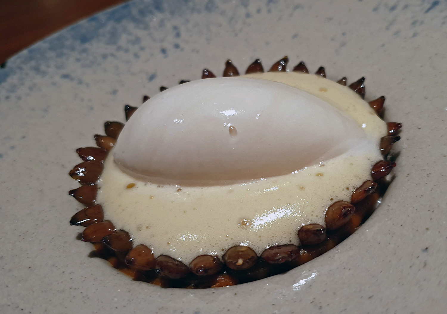 Cod , Frantzen “prestige” Caviar , Sake , Whey , Razor Clams and Sprouted Walnuts. This was one of the highlights of the meal , perfection.