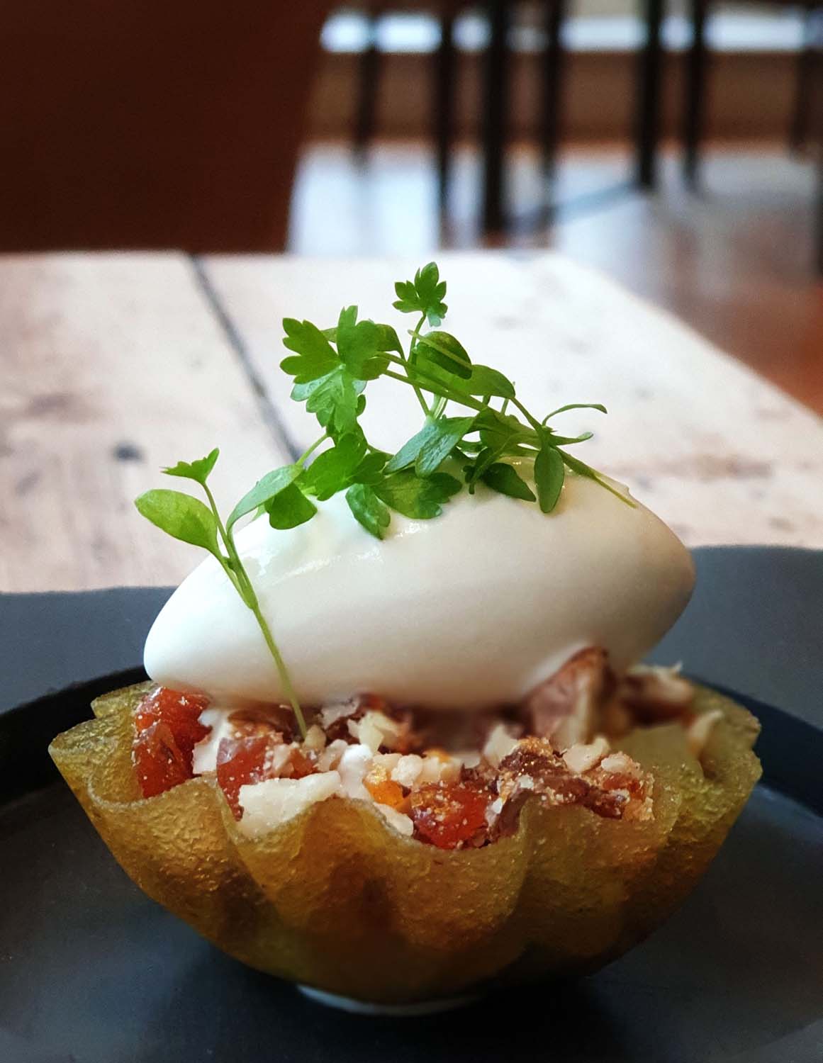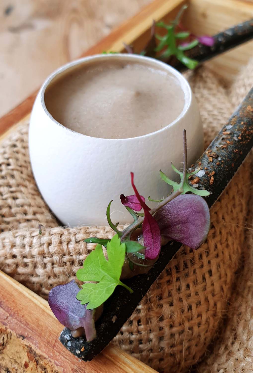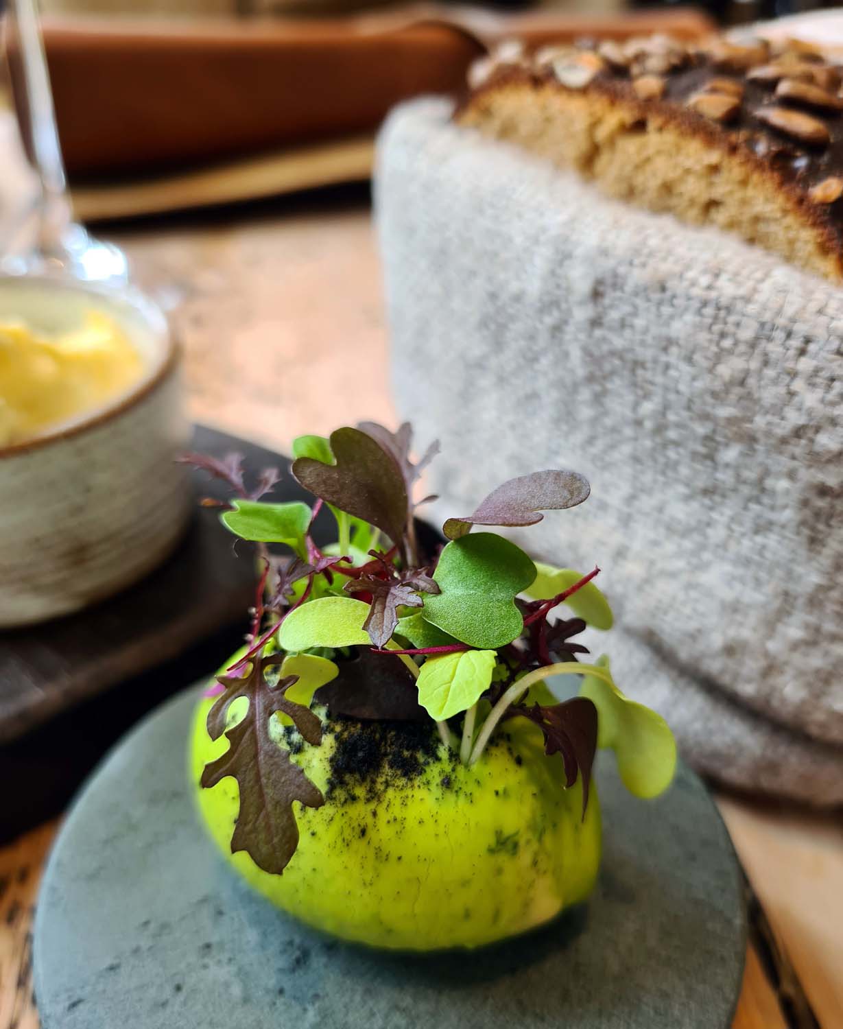 Egg filled with caramelised Whey custard and roasted Celeriac served with these amazing little breadsticks.