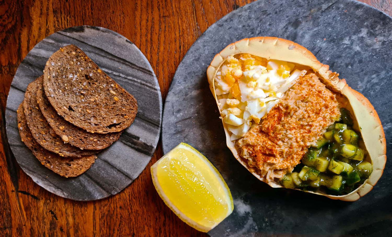 Dressed Crab , Cucumber Pickle , Rye Croutes – £13.00