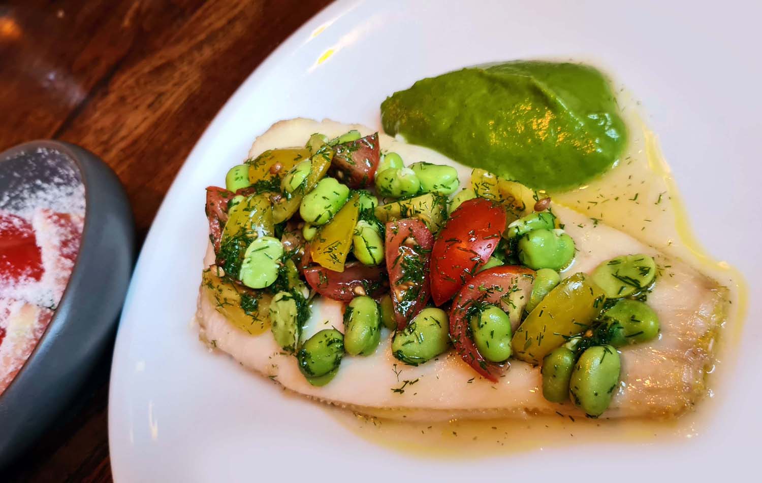 Whole Lemon Sole , Sauce Vierge , Basil Puree , new Potatoes £25