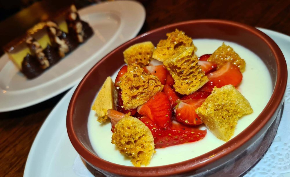 Marinated Strawberries , Yoghurt Panna Cotta and Cinder Toffee – £9.00