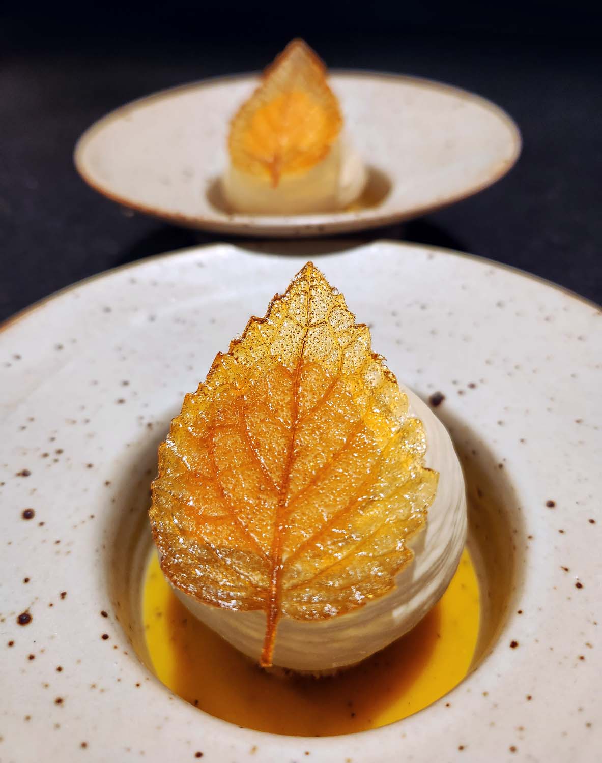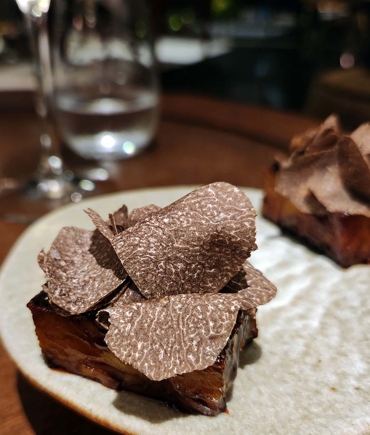 Truffle pudding caramelised in Banana Molasses , Black Garlic and Truffle.