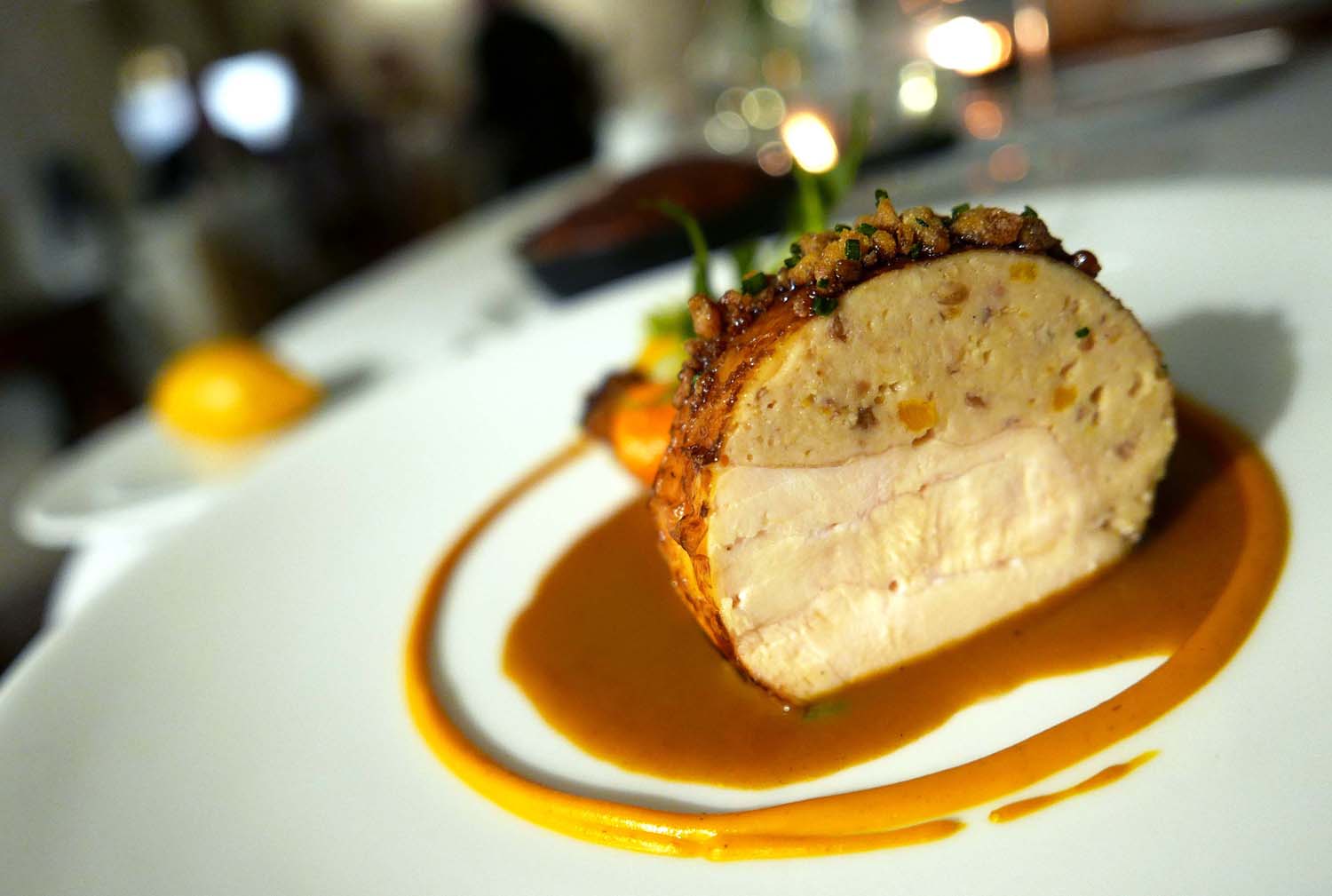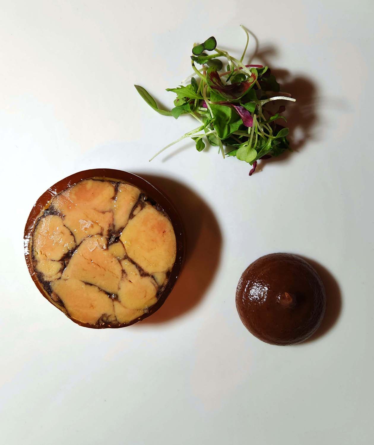 Udales Corn fed Chicken – Roasted breast of Chicken , Confit of leg meat and garden vegetable tartelette , Chettinad sauce.