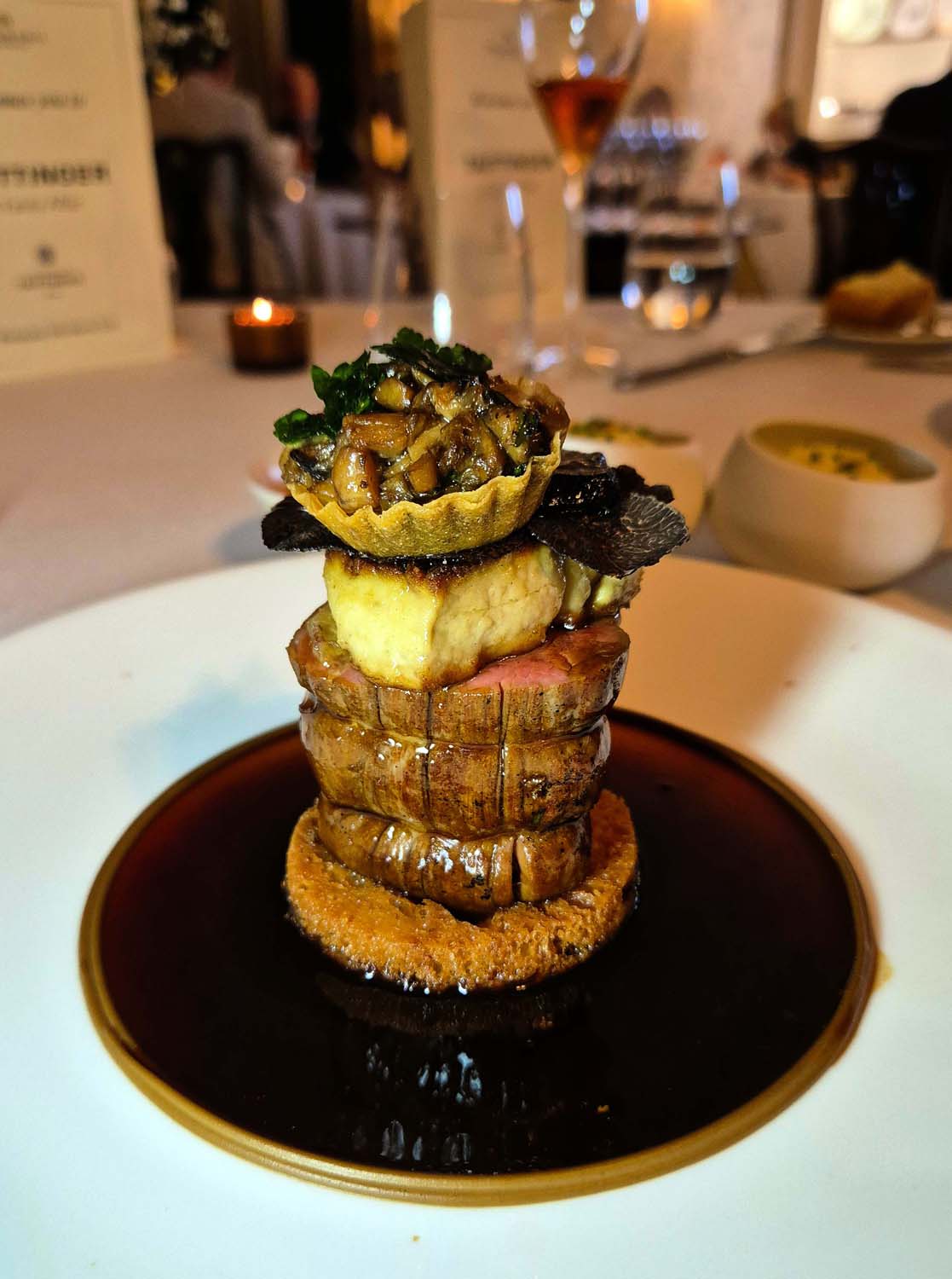 Cumbrian Longhorn Beef Wellington – Tandoori spice marinated , Charcoal roasted fillet of Beef with a classic Mushroom Duxelle and Tandoori jus.