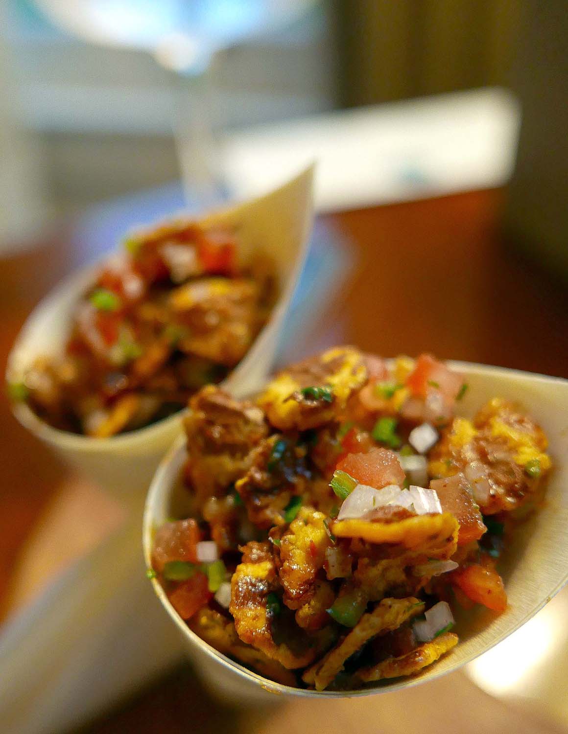 Pre- dinner treats in the Lounge – Garbanzo Chaat – Garbanzo Beans , sweet and spicy Salsa.
