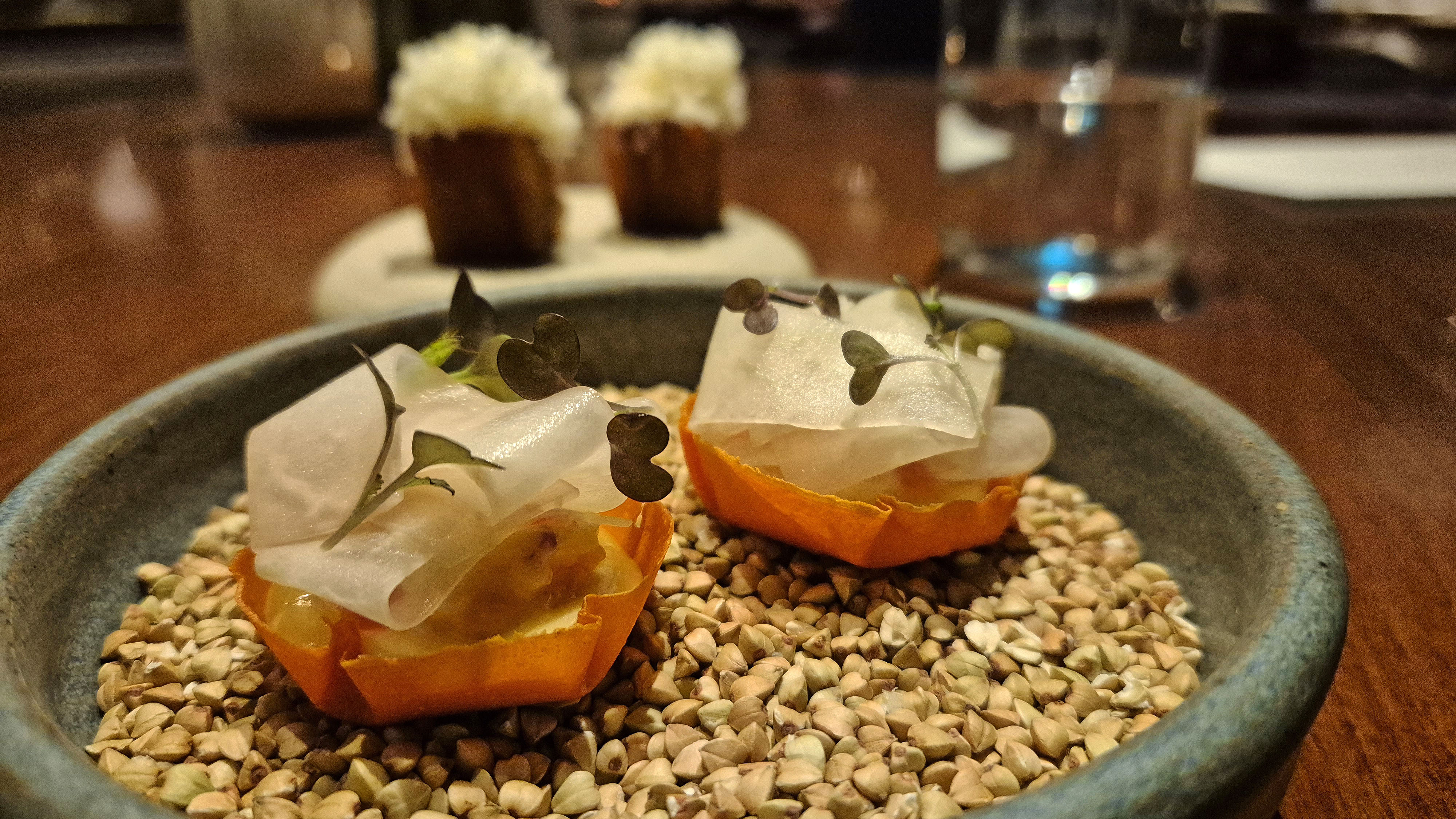 Black Hebridean Hogget , Perilla , Allium , Our farm Kale. Reared just over the road from the restaurant we experienced 3 magnificent cuts (Loin , Neck and Shoulder). So much flavour and all cooked very differently….loved this course so much.