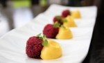 Cumbrian sticky Gingerbread , Sea buckthorn jellies , Jeffersons Rum gel and white chocolate.